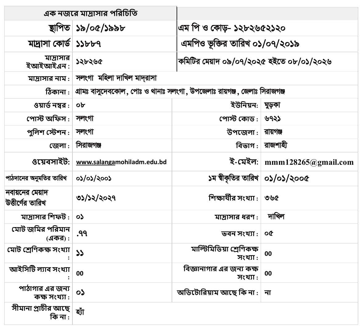 এক নজরে পরিচিতি